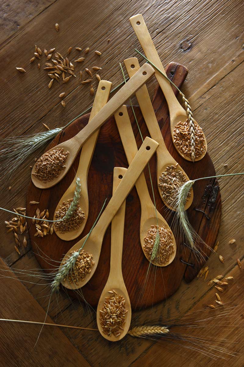Entre otras características, cosechamos y trabajamos con multitud de trigos antiguos 100% ecológicos como la espelta, el trigo negrillo, florencio aurora, trigo corazón, senatore cappelli, monococcum… los cuales son cultivados, recolectados y transformados en nuestro propio pago harinero a través los tradicionales molinos de piedra, lo que hace que todos y cada uno de nuestros productos tengan propiedades altamente nutritivas y un sabor inigualable.